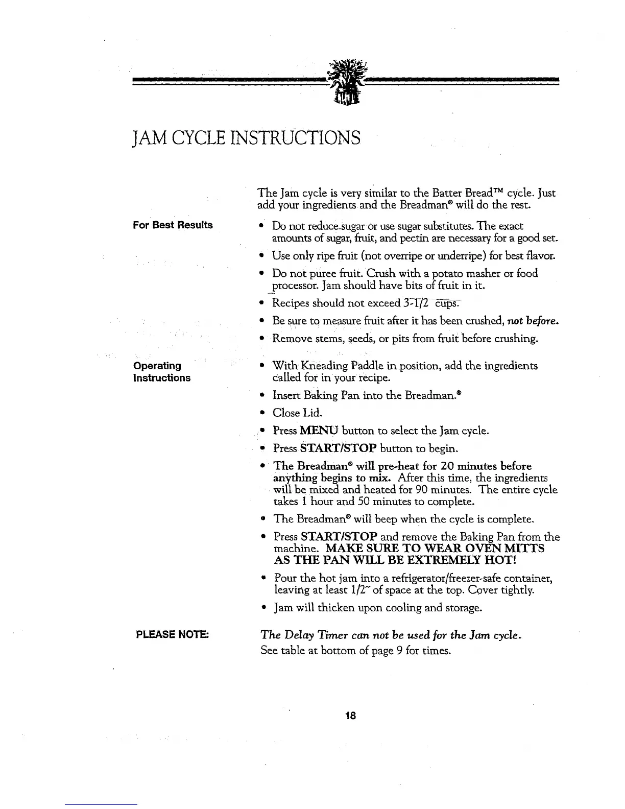 The Jam cycle is very similar to the Batter Bread TM cycle. Just