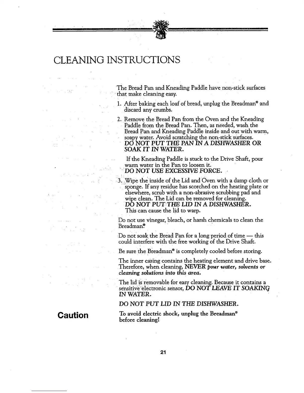 1. After baking each loaf of bread, unplug the Breadman ®and
