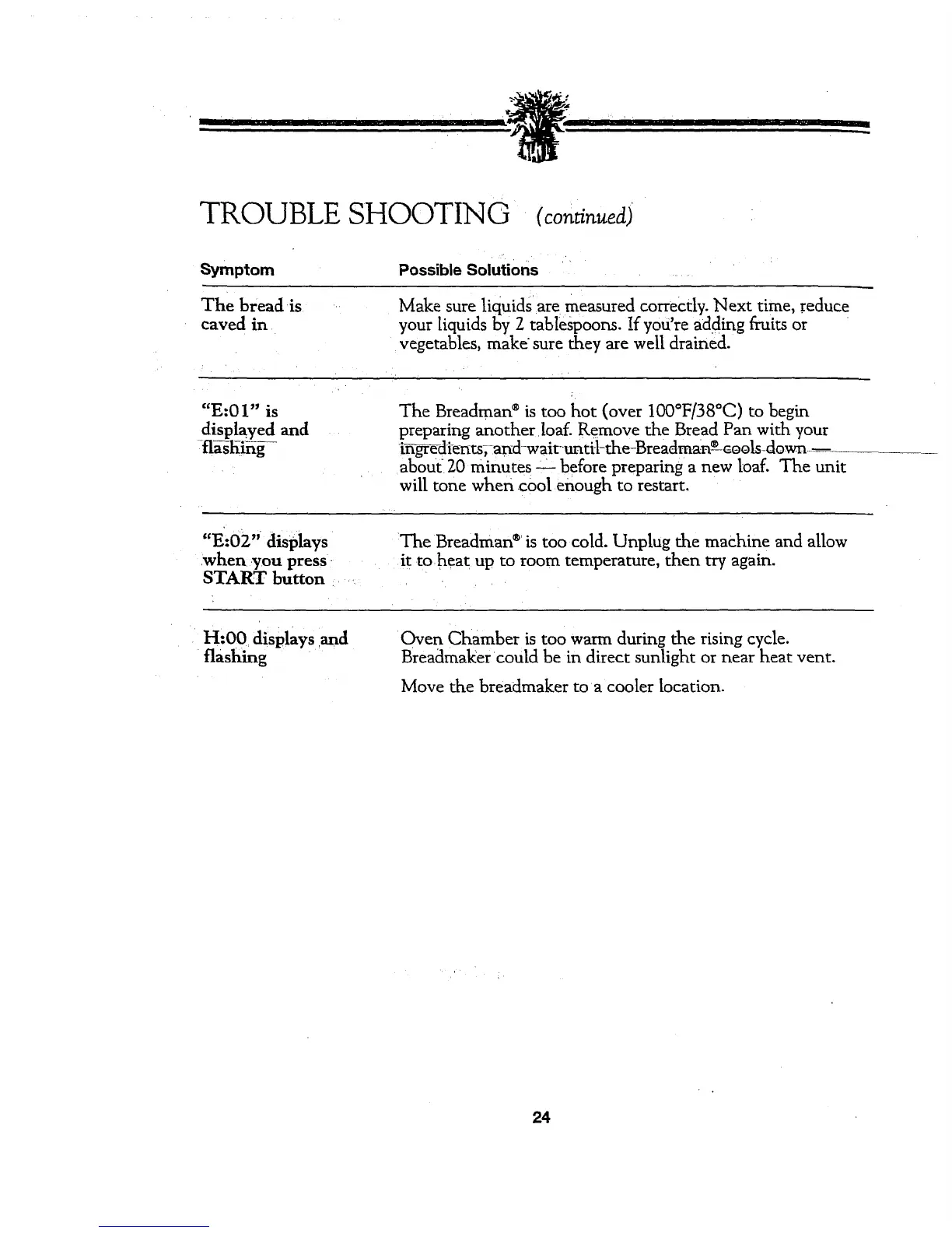 :The Breadman ®'is too cold. Unplug the machine and allow