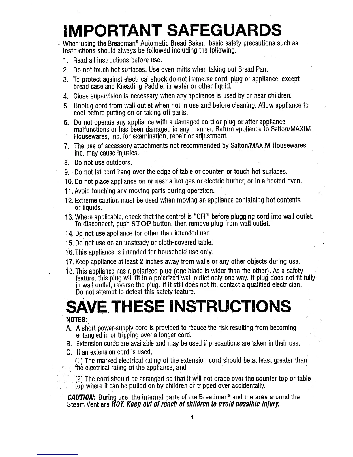 •When usingthe Breadman®Automatic BreadBaker, basic safety precautionssuch as