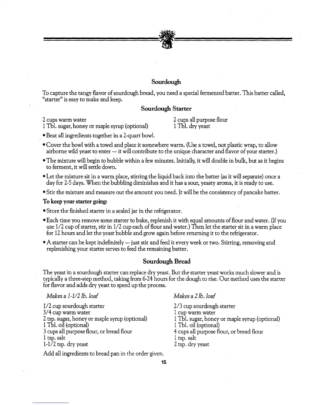 1Tbl.sugar, honeyor maple syrup (optional) 1Tbl.dryyeast