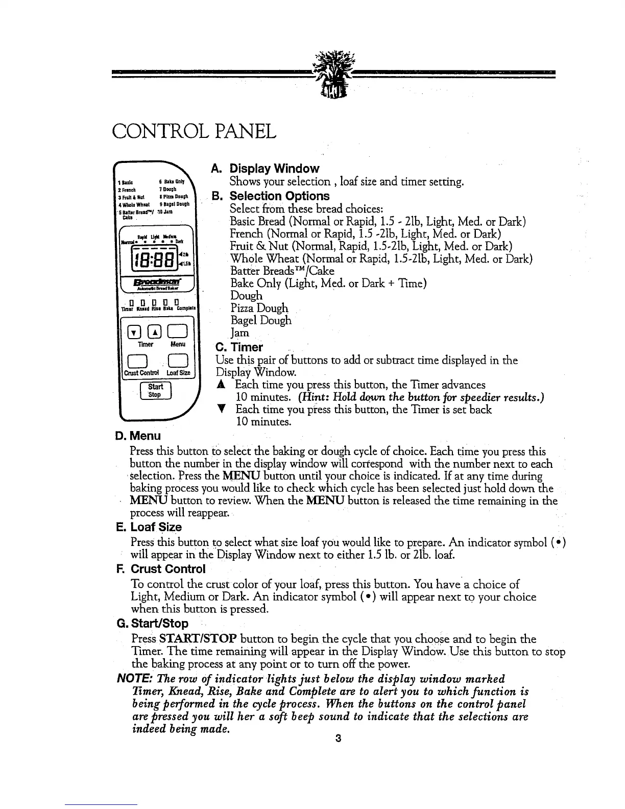 Press this button to select the baking or dough cycle of choice. Each time you press this