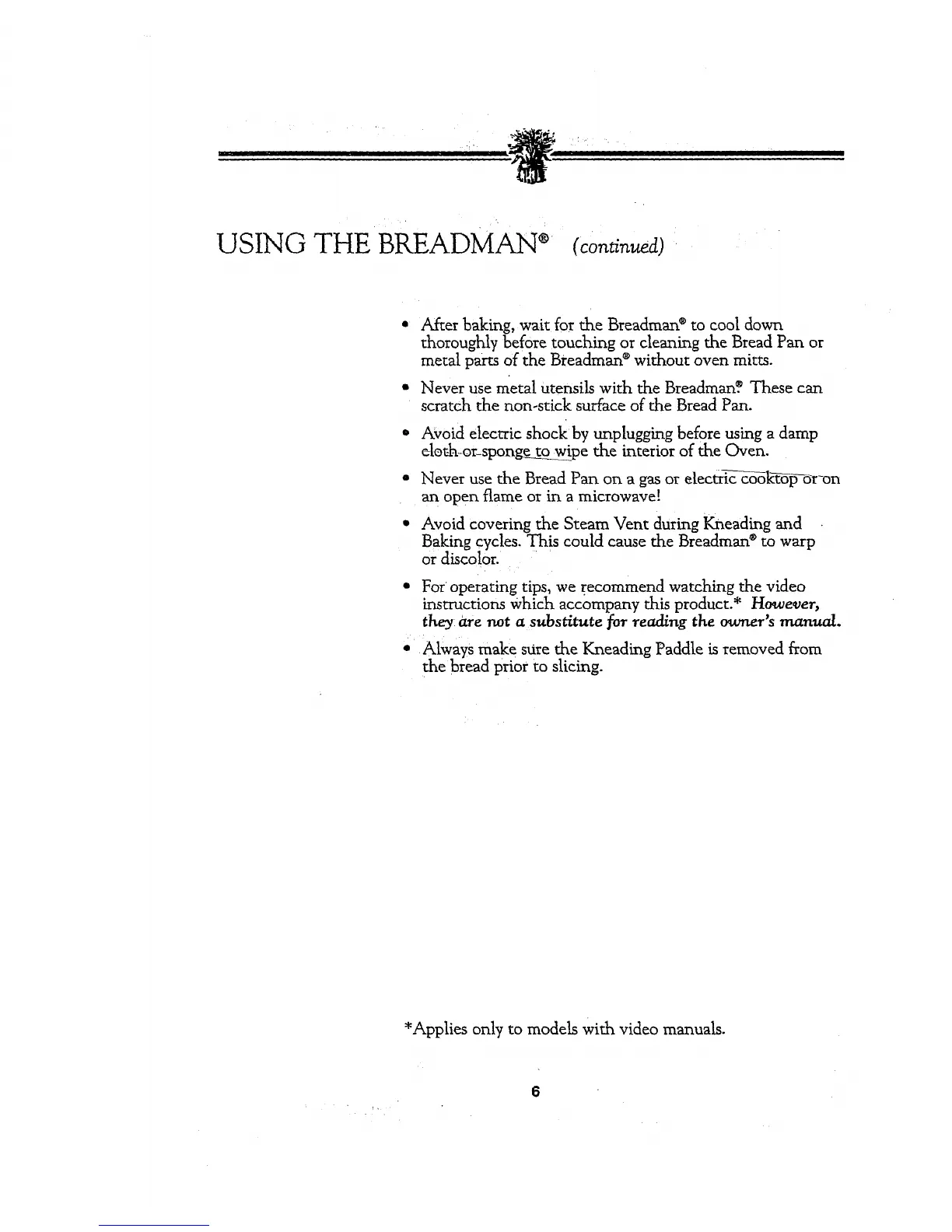 • Never use the Bread Pan on a gas or etectri_kt-g6-p--p o-r-on