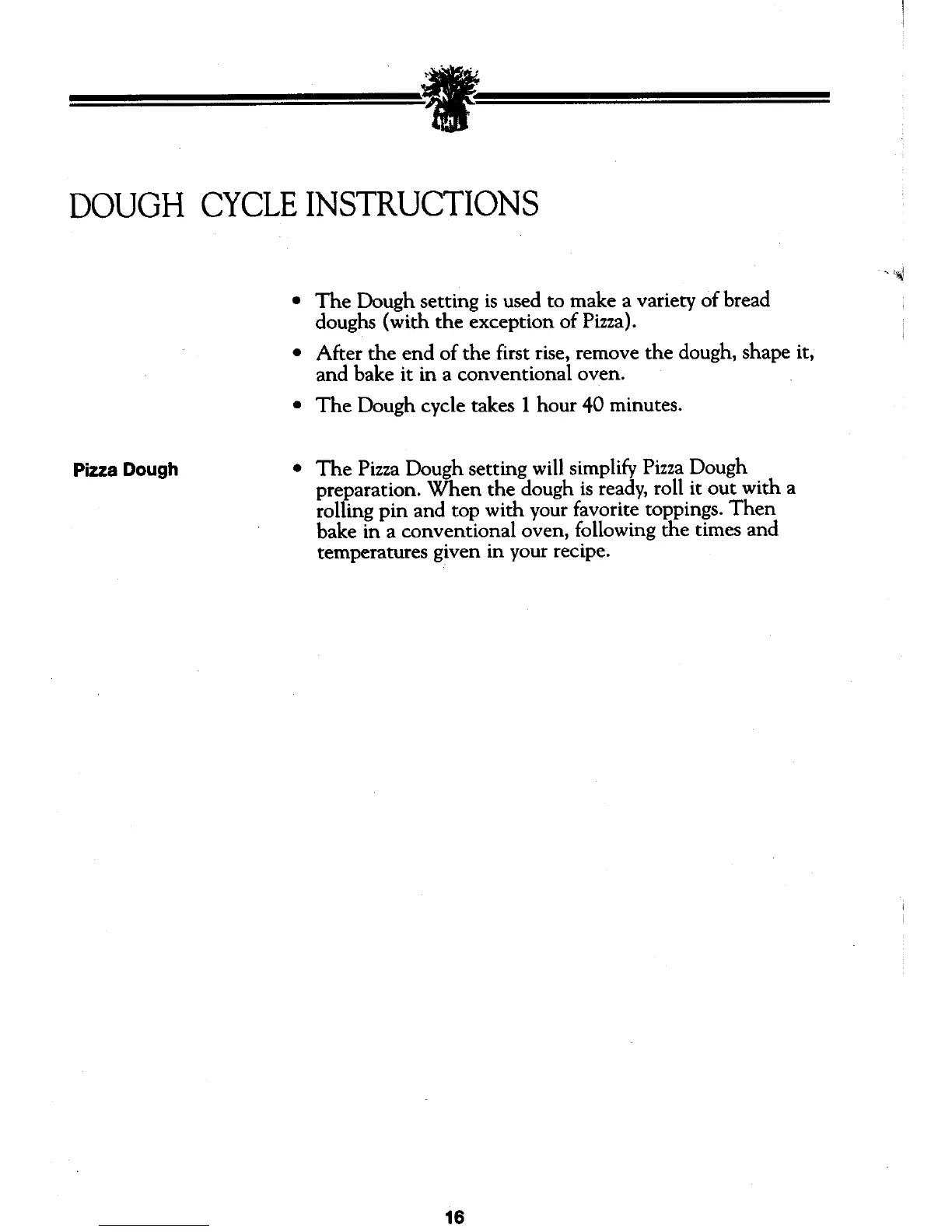Breadman TR810 - Dough Cycle Instructions; General Dough Cycle Use; Pizza Dough Cycle Preparation