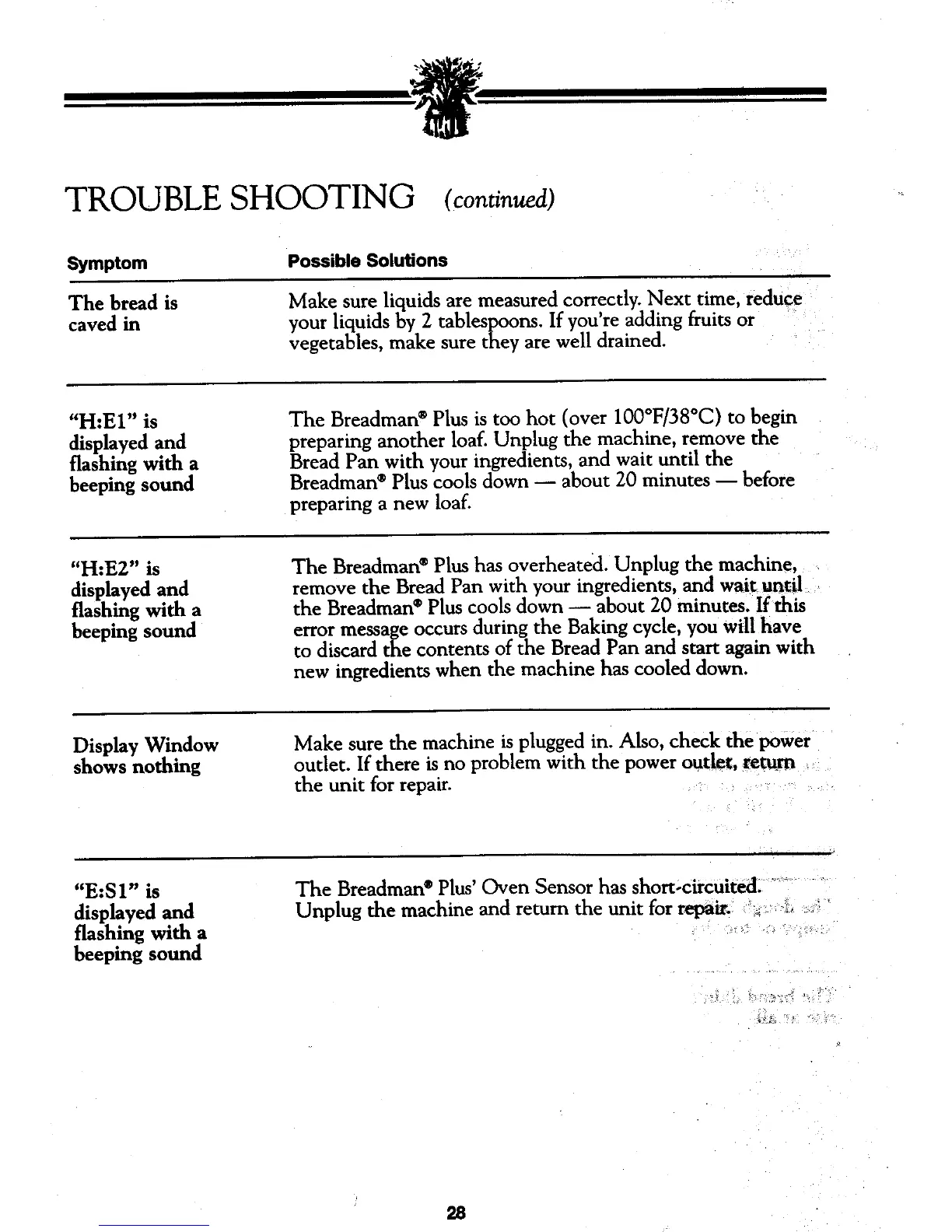 Breadman TR810 - Caved-in Bread and Overheating Errors; Display and Sensor Error Codes