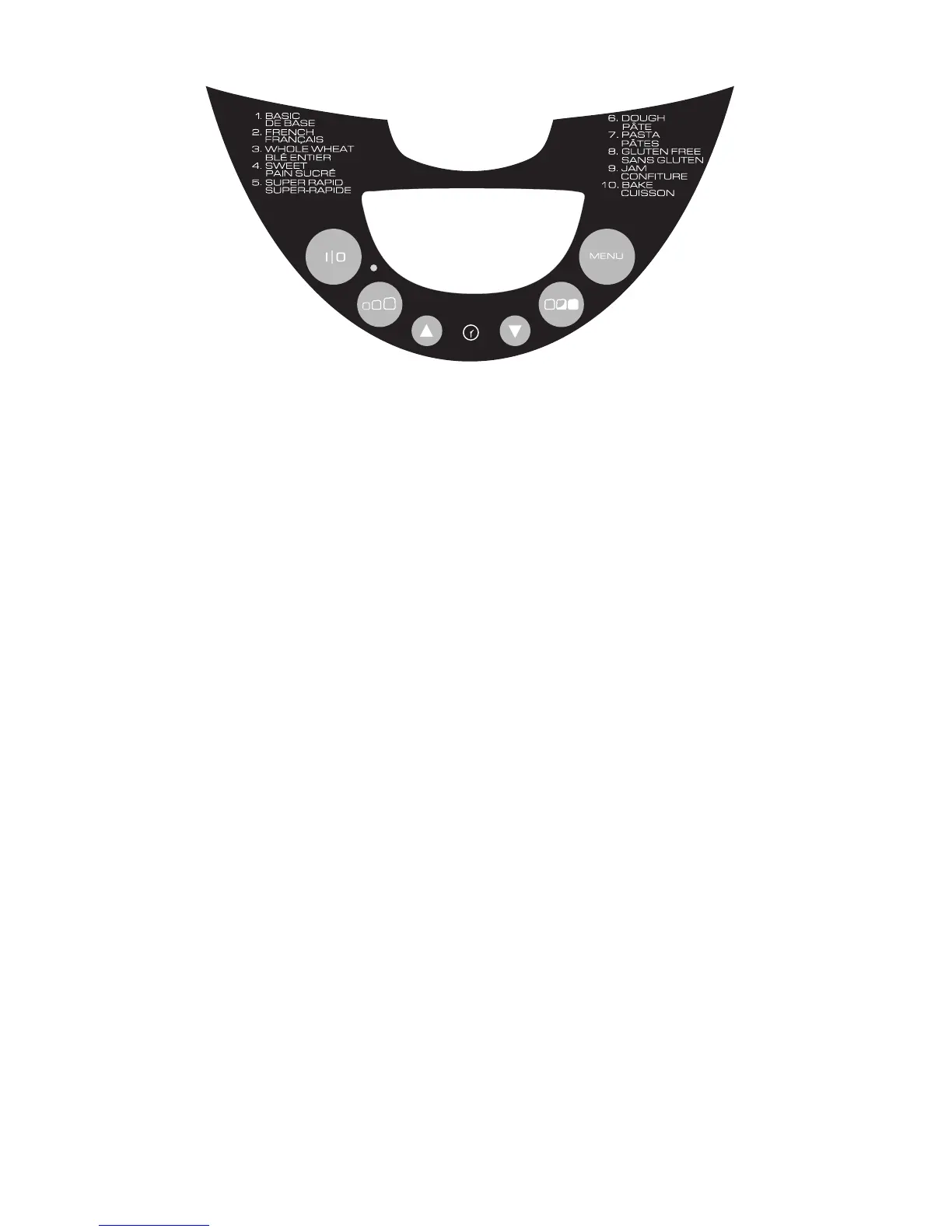 TIMER setting, crust COLOR, LOAF size