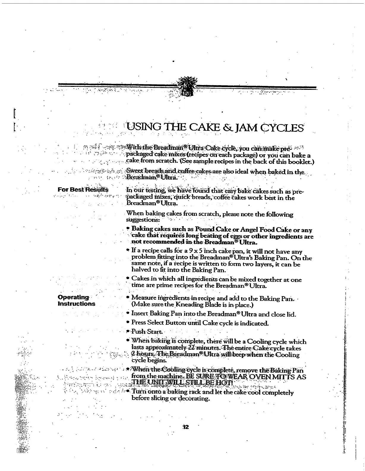 Breadman Ultra TR-700 - Using the Cake & Jam Cycles; Tips for Cake and Jam Cycles; Operating Instructions for Cake and Jam