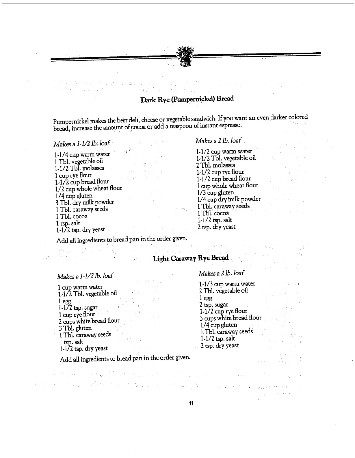 Breadman Ultra TR-700 - Dark Rye Bread; Light Caraway Rye Bread