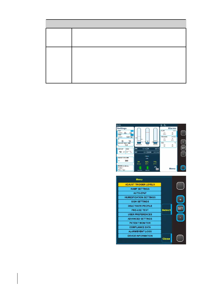 This menu item lets you make changes to the humidifier and the heated circuit settings.