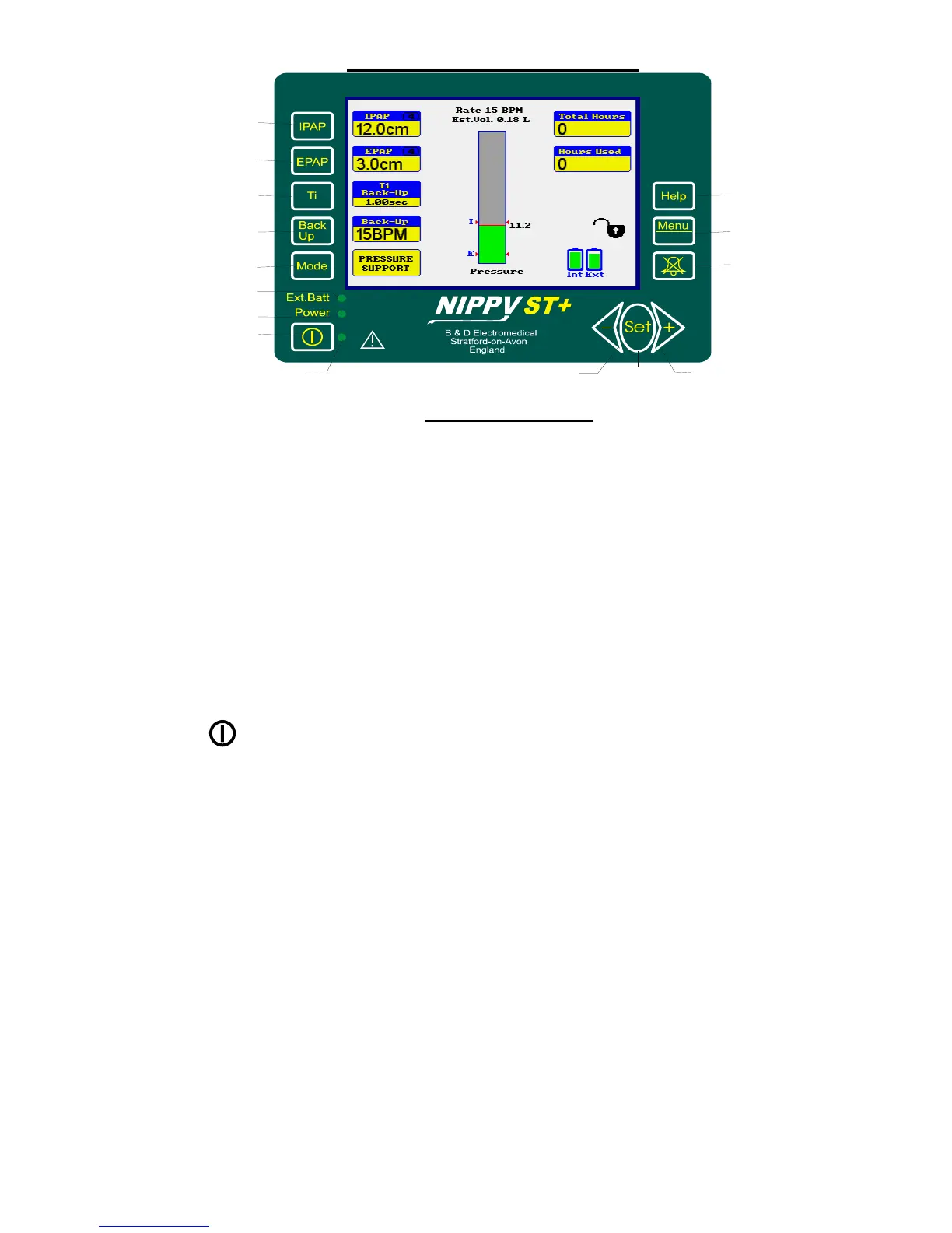 13. Ext. Batt - Indicates that ventilator is running on battery power.