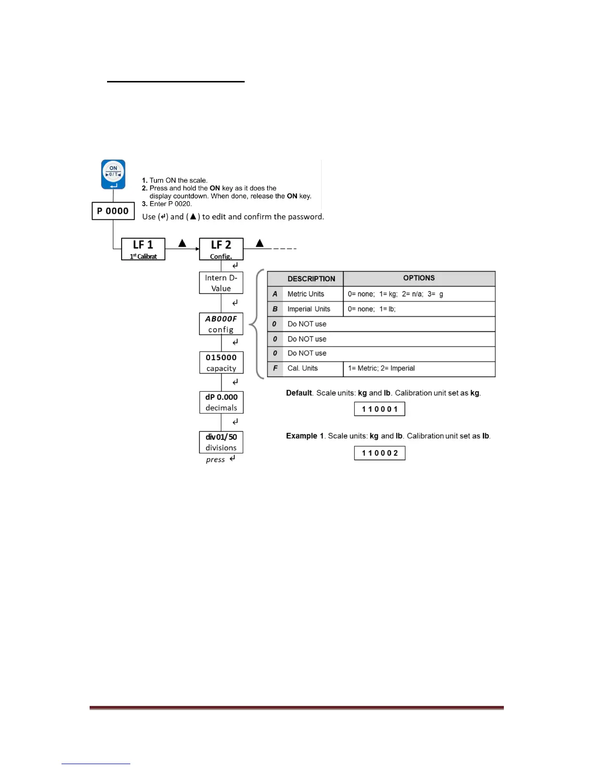 Enter the function LF 2 to set the units, range mode, calibration units, decimal position of the