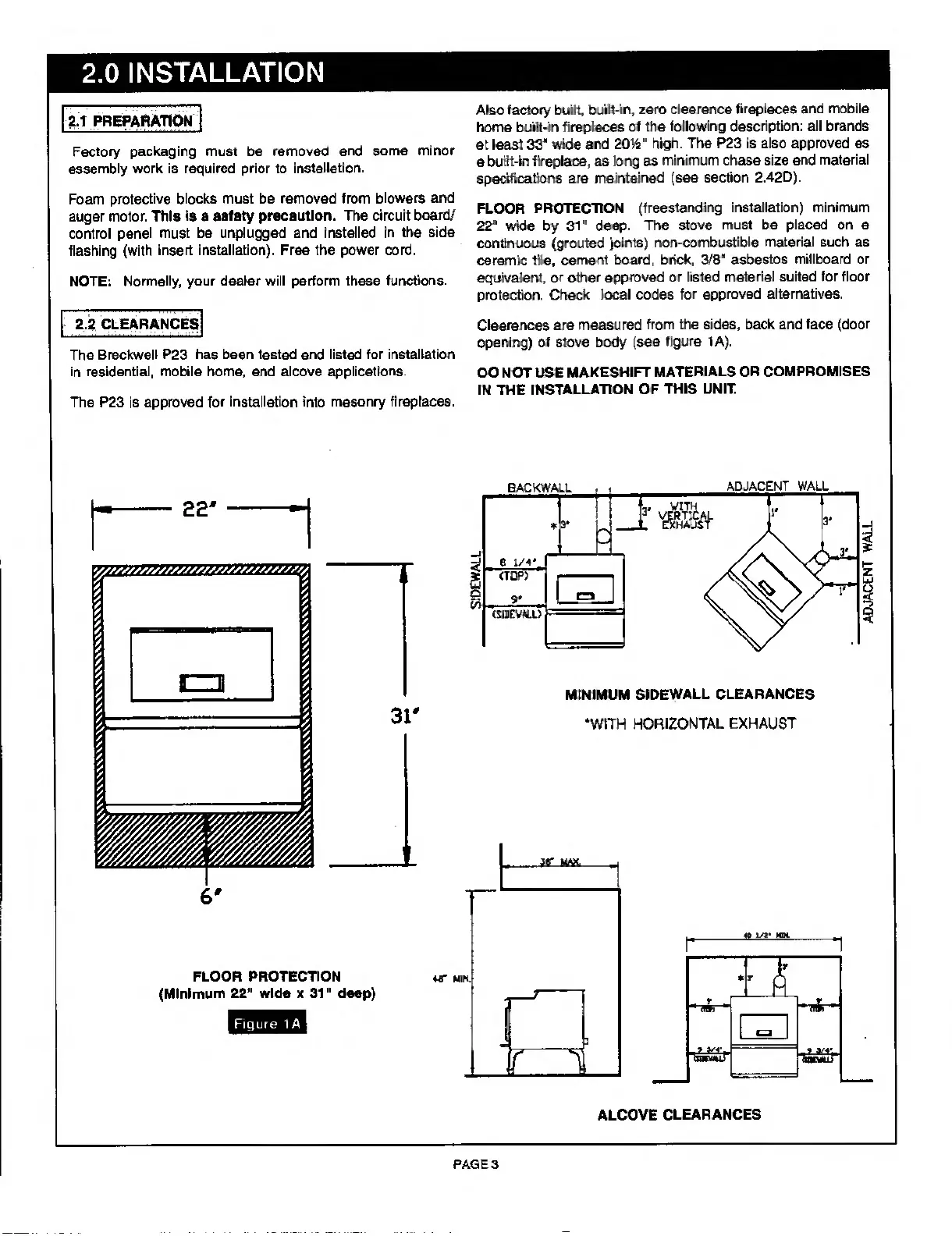 Breckwell P23FS - Installation; Preparation; Clearances