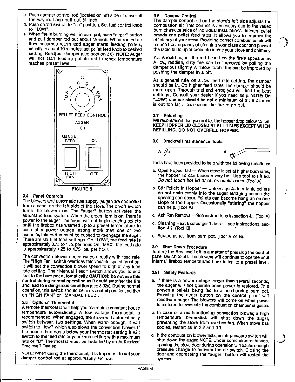 Breckwell P241 - 3.2 Pre-Startup Check; 3.3 Building a Fire; 3.4 Panel Controls; 3.5 Optional Thermostat