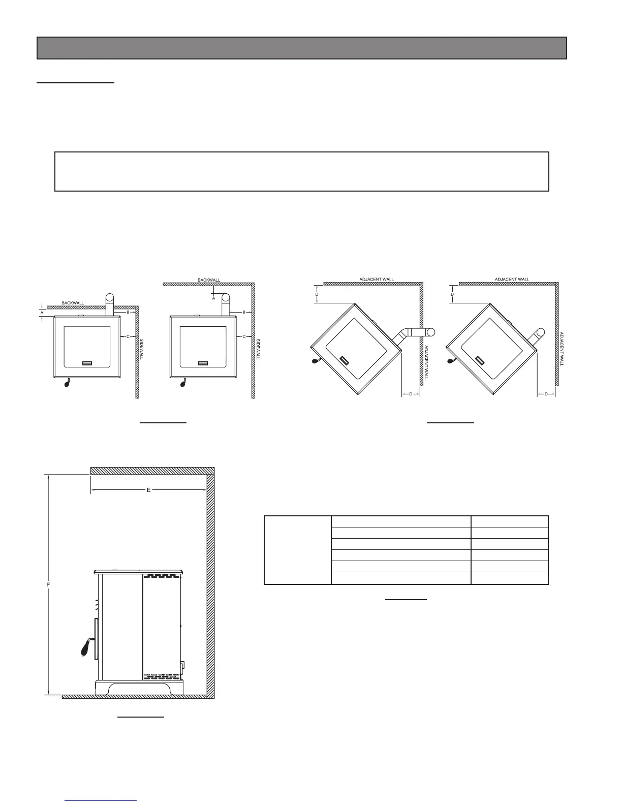 NOTE: Distance “C” on the left-hand side of your pellet stove may need to be greater than the minimum