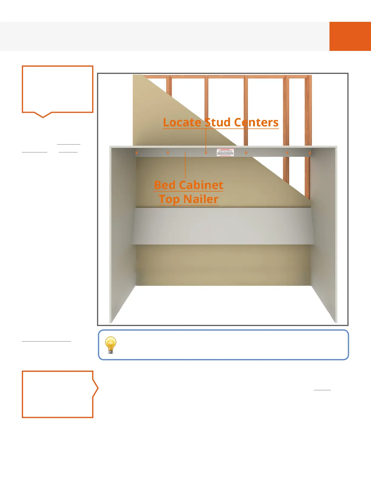 Pre-drill “Bed Cabinet Top Nailer” using a 1/8” drill bit at each stud