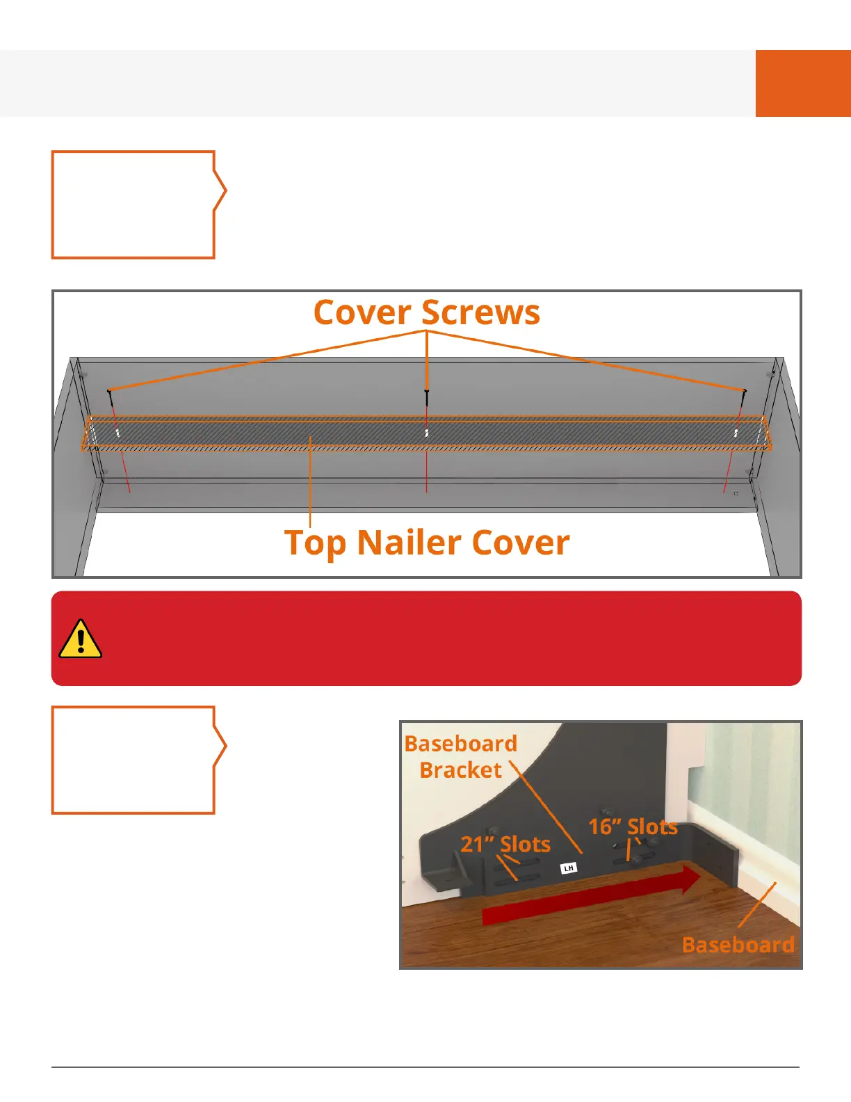 Attach the “Top Nailer Cover” using the 1-1/4” screws from