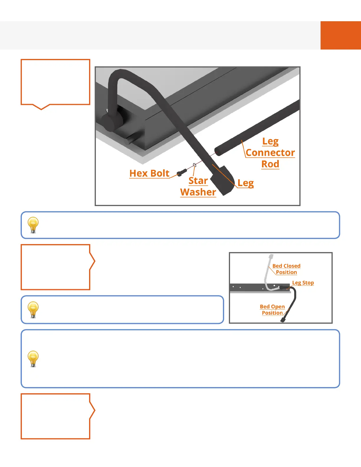 and leg connector rod. We recommend NOT doing this unless needed.