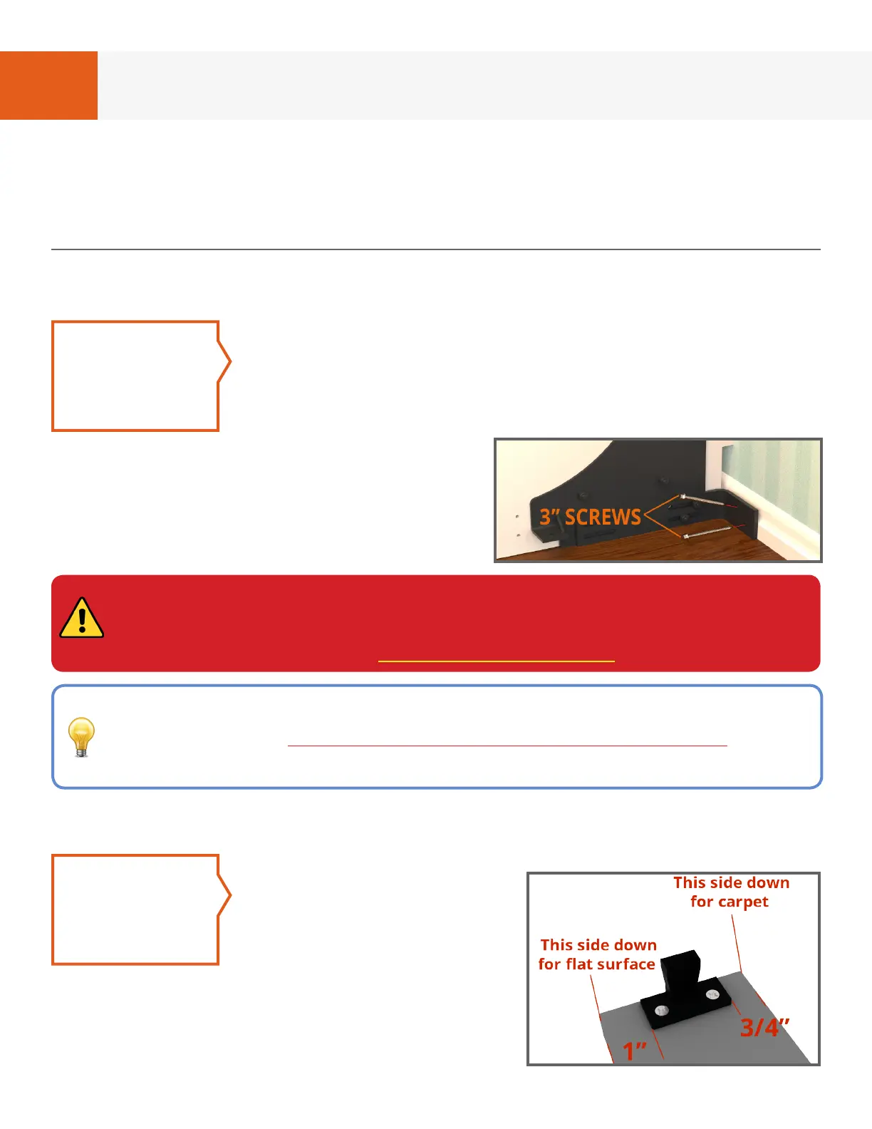 attach the “Baseboard Bracket” using two 3”