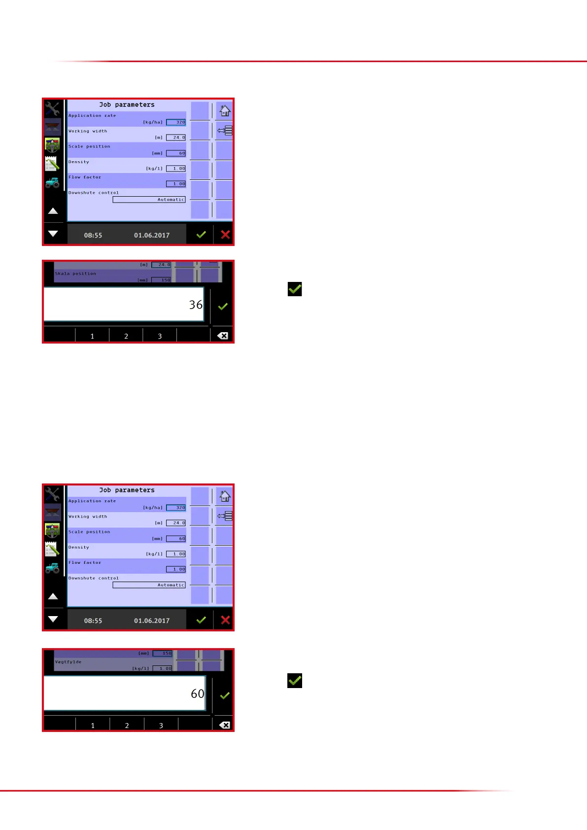 NB: it is important to enter the value of the actual rear-door setting, as otherwise the spreader will spread incorrectly.