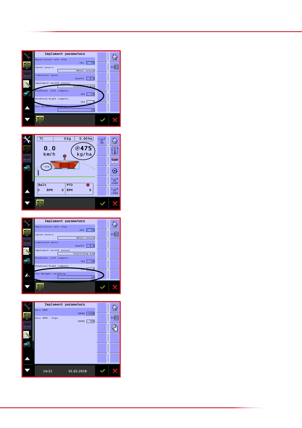 Headland le/right: Here it is possible to enter a reduction of spreading volume when