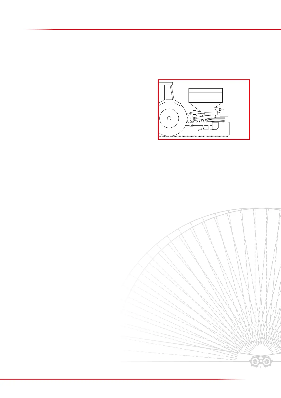 The spreader must not tilt backwards, not even when the hopper is full. The spreader must be mounted directly behind the tractor, i.e. perpendicular