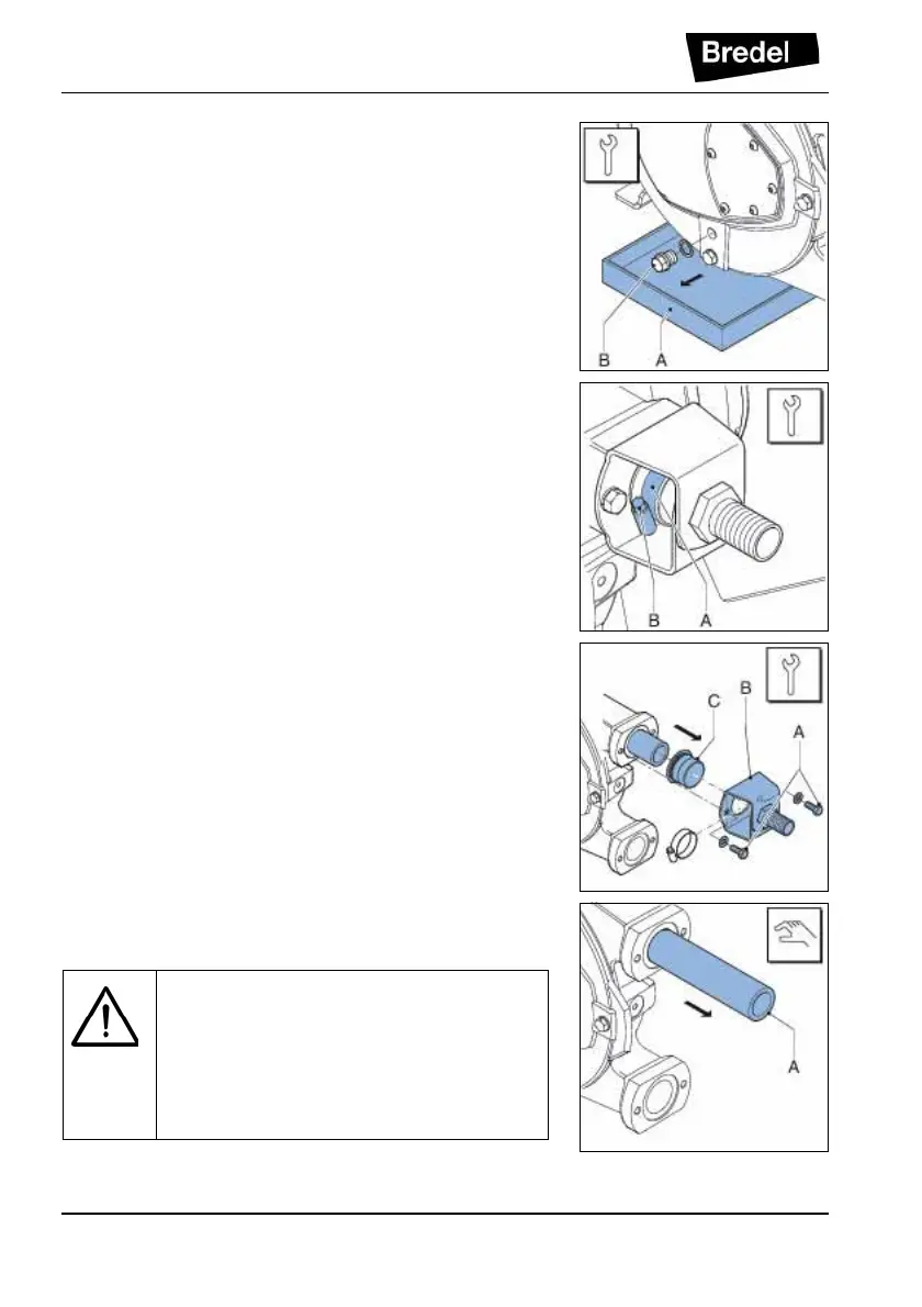 6. Loosen the retaining bolts (A) of the bracket (B)