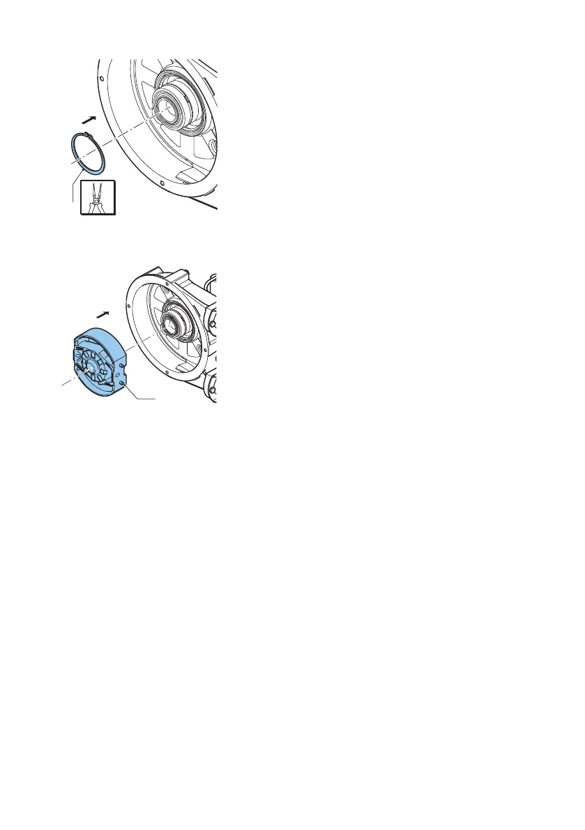 17. Fit the rotor (A). The rotor is placed on the bearings with a loose fit. Press the rotor on the hub