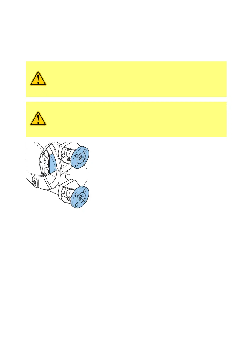 1. Jog the motor until the pressing shoe (B) is positioned between the inlet and outlet ports (A).