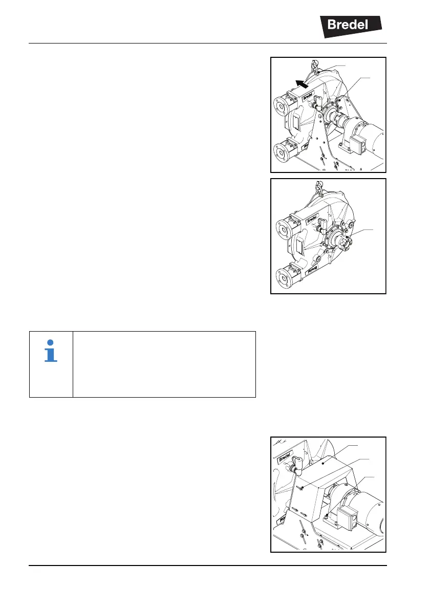 2. Loosen the fasteners (A) of the coupling guard