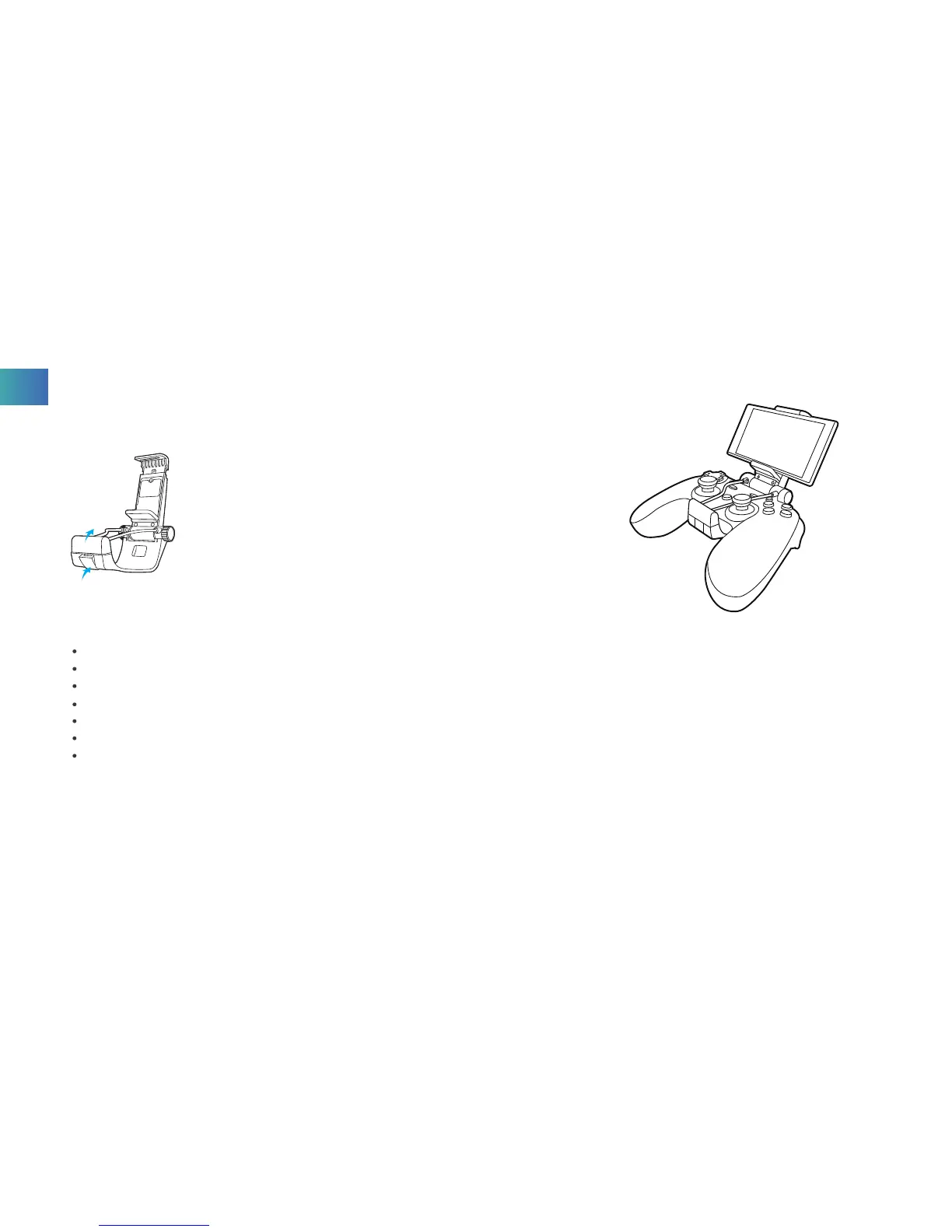 Avoid water or other liquid in the Game Controller and the FPV Goggles, it may affect the performance of these devices.