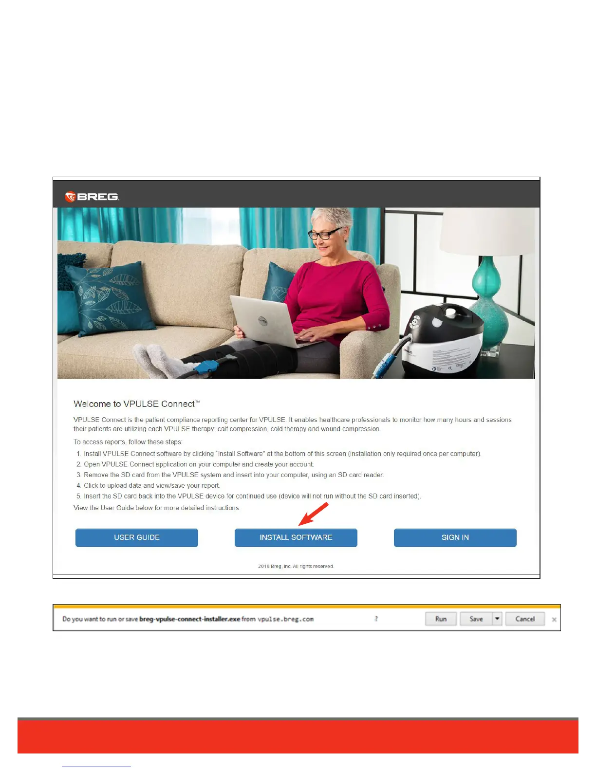 1. Download VPULSE Connect software. Visit breg.com/vpulseconnect and click “Install Software” button.