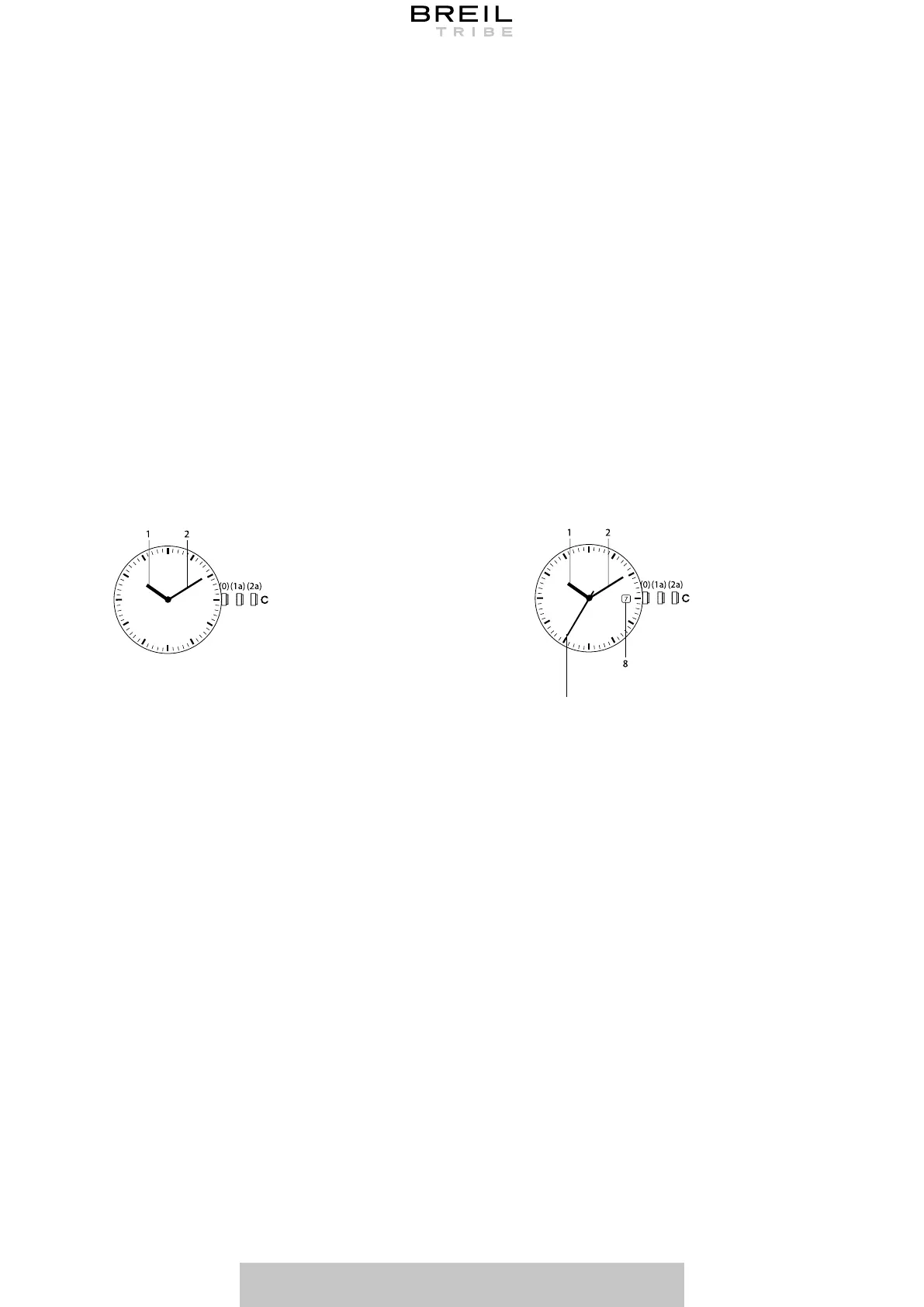 2. Turn the crown clockwise to adjust the hour (1) and minute (2) hands at the correct time.