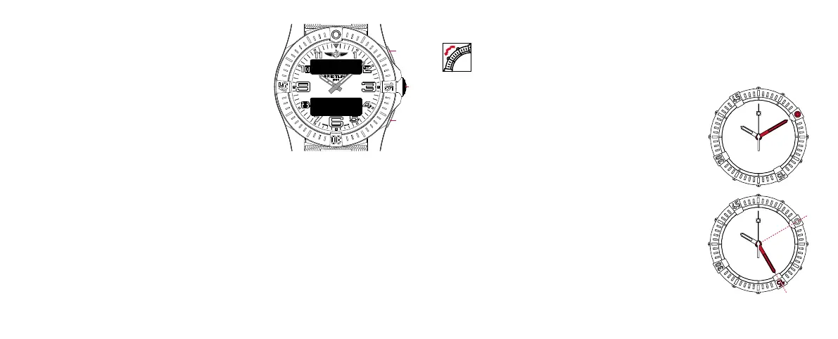 この時計のベゼルには、4 個の数字インデックス(ライダータブ)