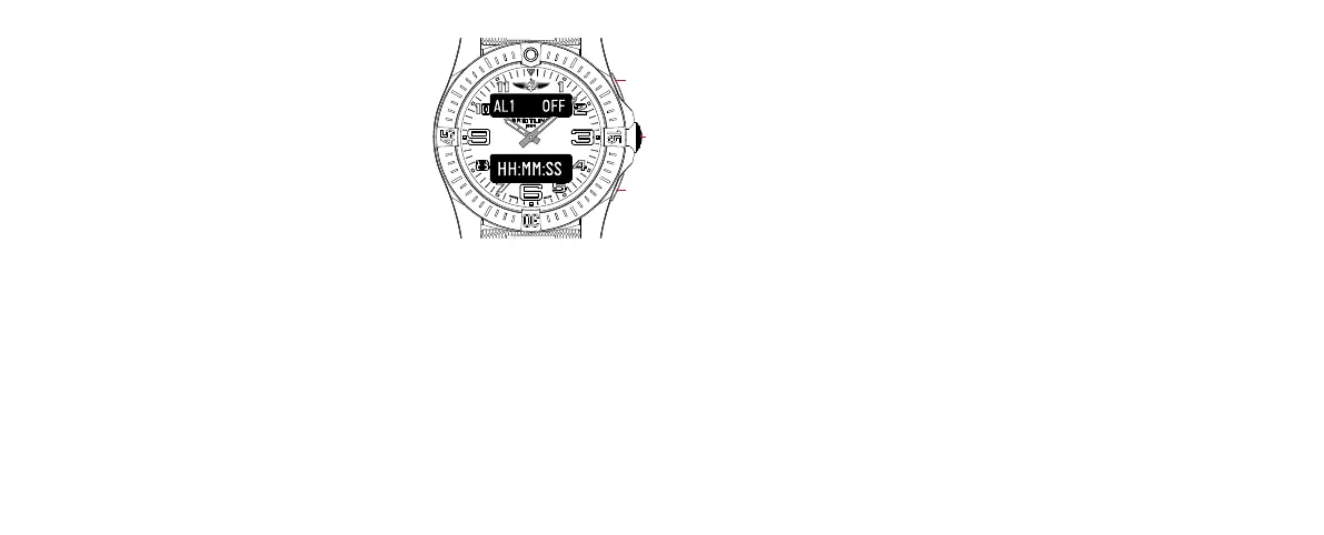 • 上段に[ALARMX] が表示され、下段に[HH:MM: ]が点滅するまでBを押し