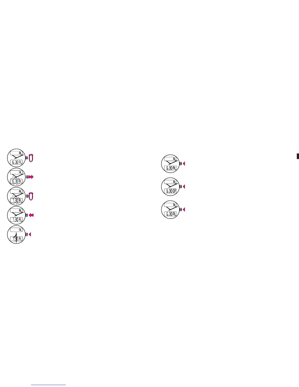 Push the crown back in. AL appears, confirming that the