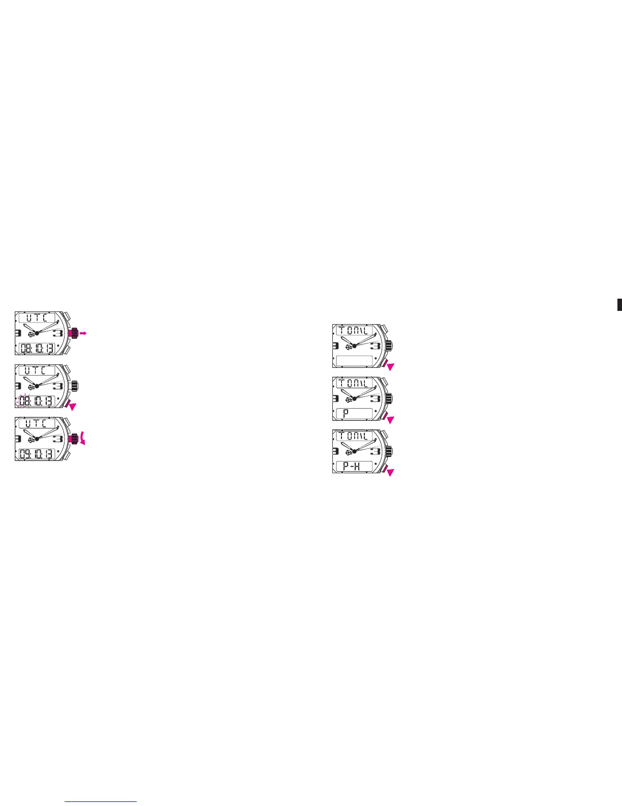 Sélectionner la fonction UTC, puis tirer la couronne en position 2.