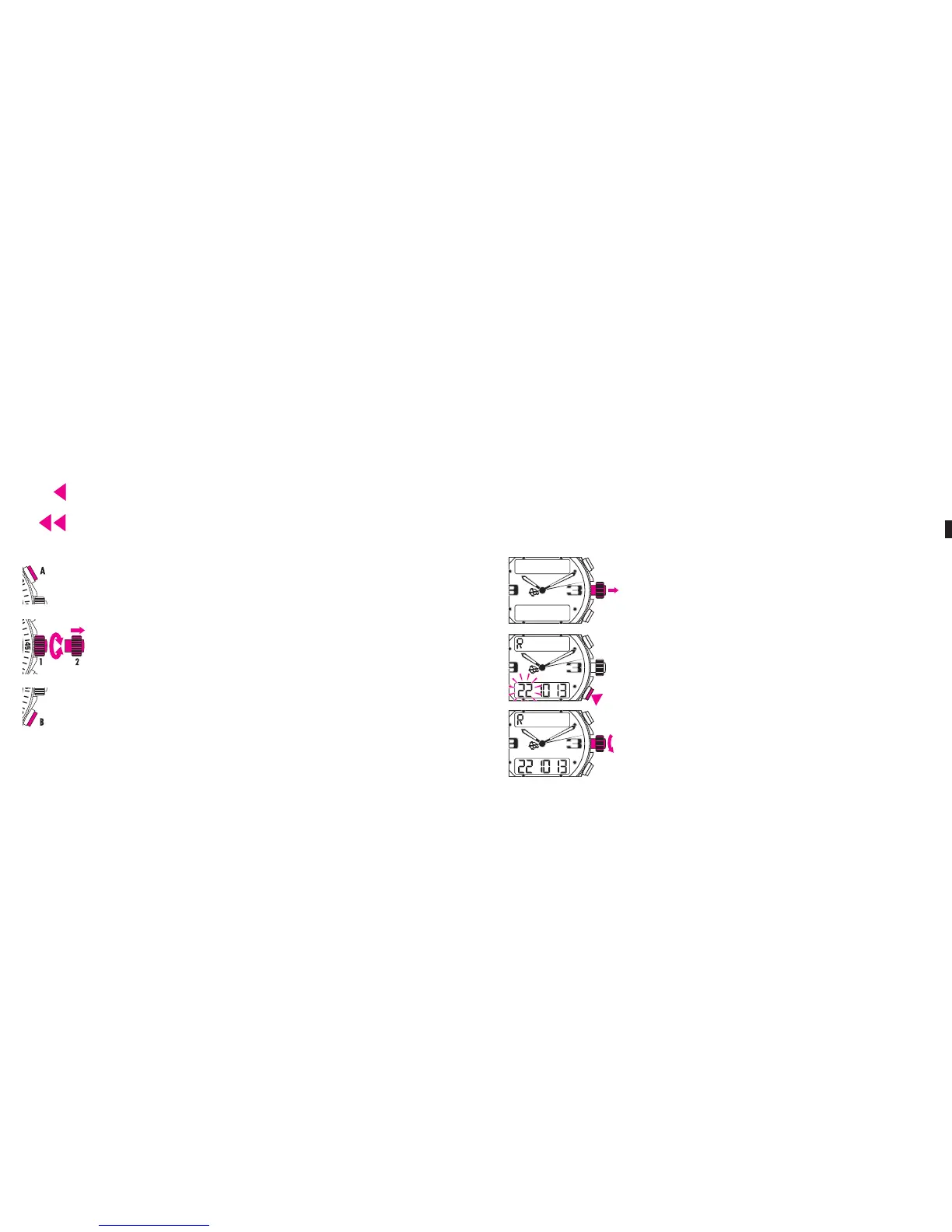 erfolgt durch Drehen der Krone. N.B. Die SEK bewegen sich nur im Uhrzei-