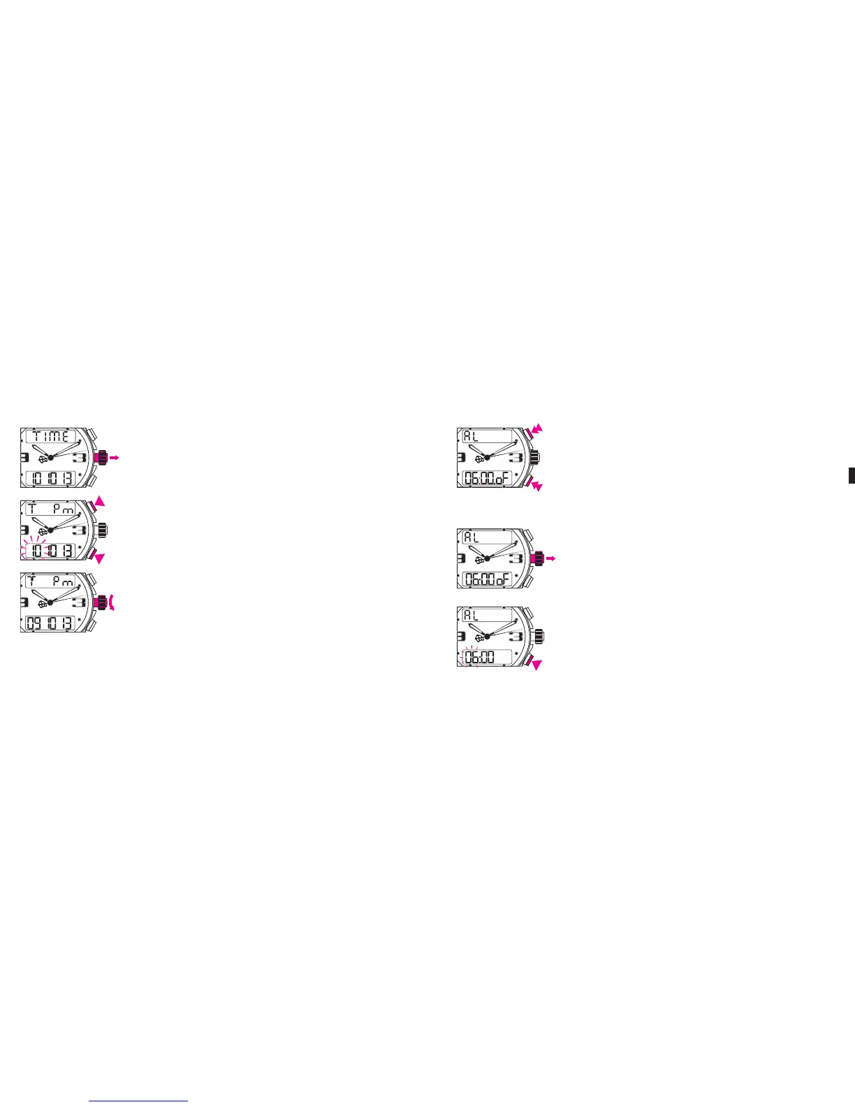 jeweiligen Korrekturen der H, MIN und SEK erfolgen durch Drehen der