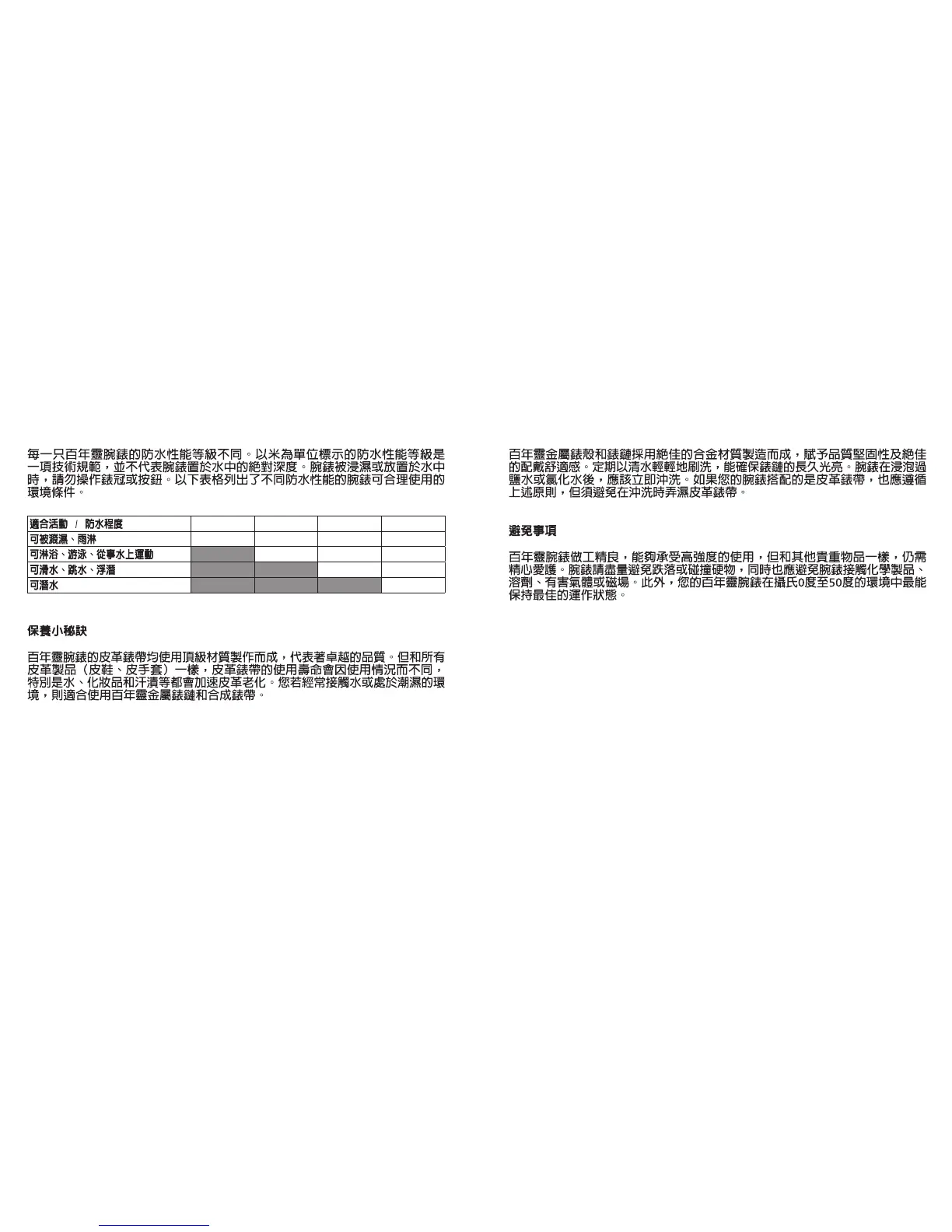 3bars/30M/100FT 5bars/50M/165FT 10bars/100M/330FT 50bars/500M/1650FT+