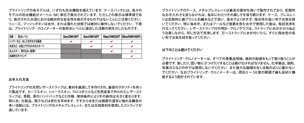3bars/30M/100FT 5bars/50M/165FT 10bars/100M/330FT 50bars/500M/1650FT+
