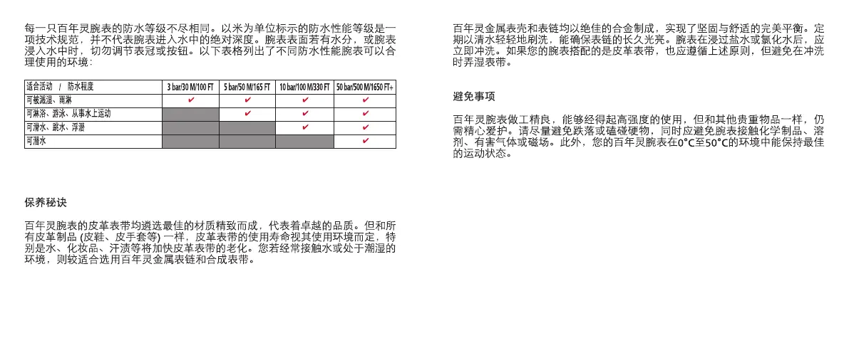 若腕表配有旋入式表冠,下水前请确保表冠已牢牢锁紧。该原则同样适用于旋入