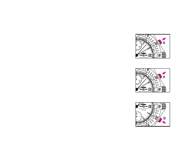 3. Para repor o cronógrafo a zero, pressione o pistão B.