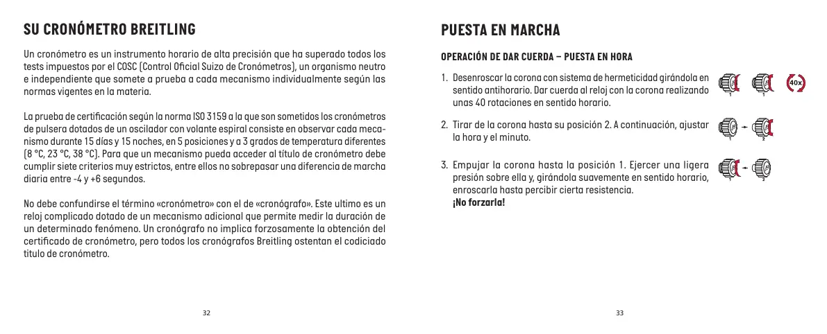 OPERACIÓN DE DAR CUERDA PUESTA EN HORA