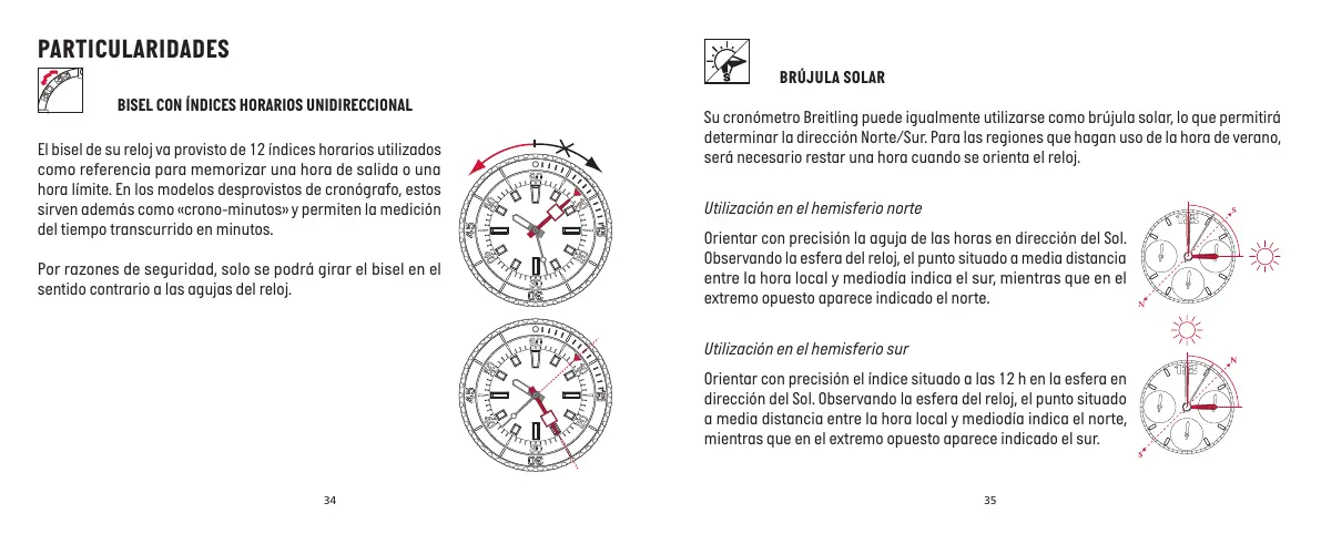Su cronómetro Breitling puede igualmente utilizarse como brújula solar, lo que permitirá