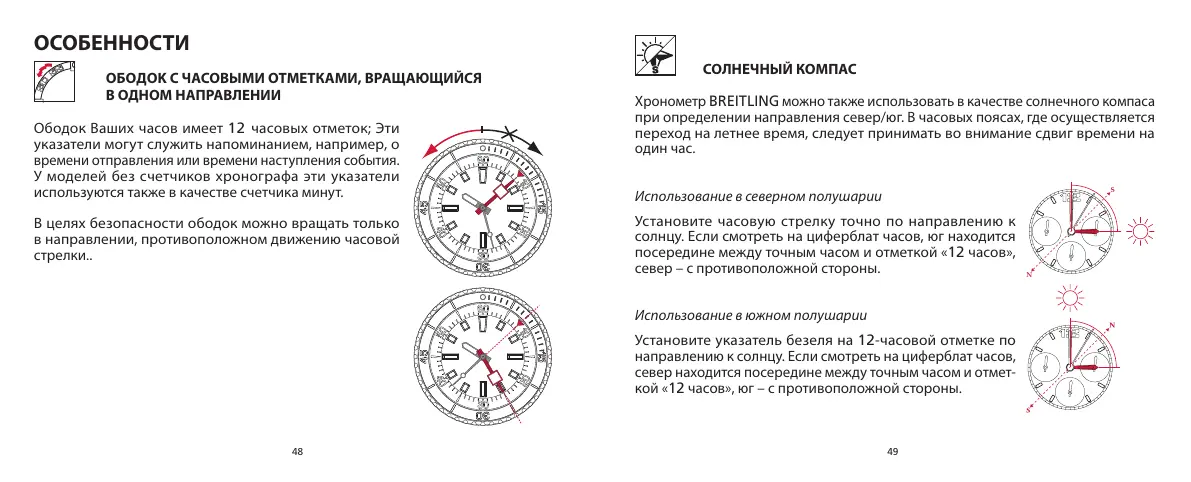 Хронометр BREITLING можно также использовать в качестве солнечного компаса