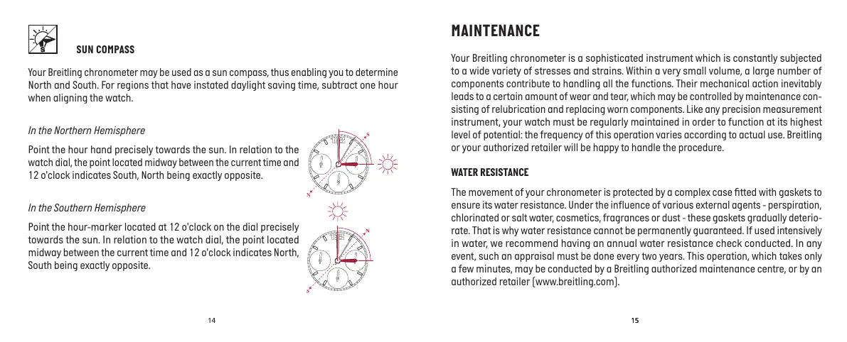 Your Breitling chronometer may be used as a sun compass, thus enabling you to determine