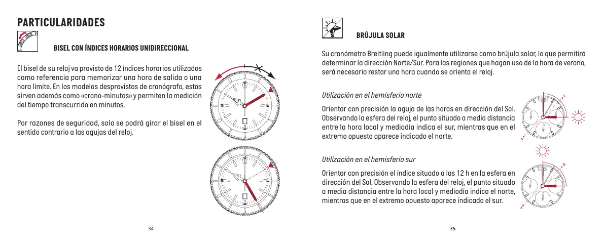 Su cronómetro Breitling puede igualmente utilizarse como brújula solar, lo que permitirá