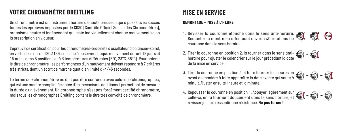 2. Tirer la couronne en position 2, la tourner dans le sens anti-