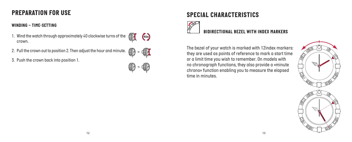 1. Wind the watch through approximately 40 clockwise turns of the