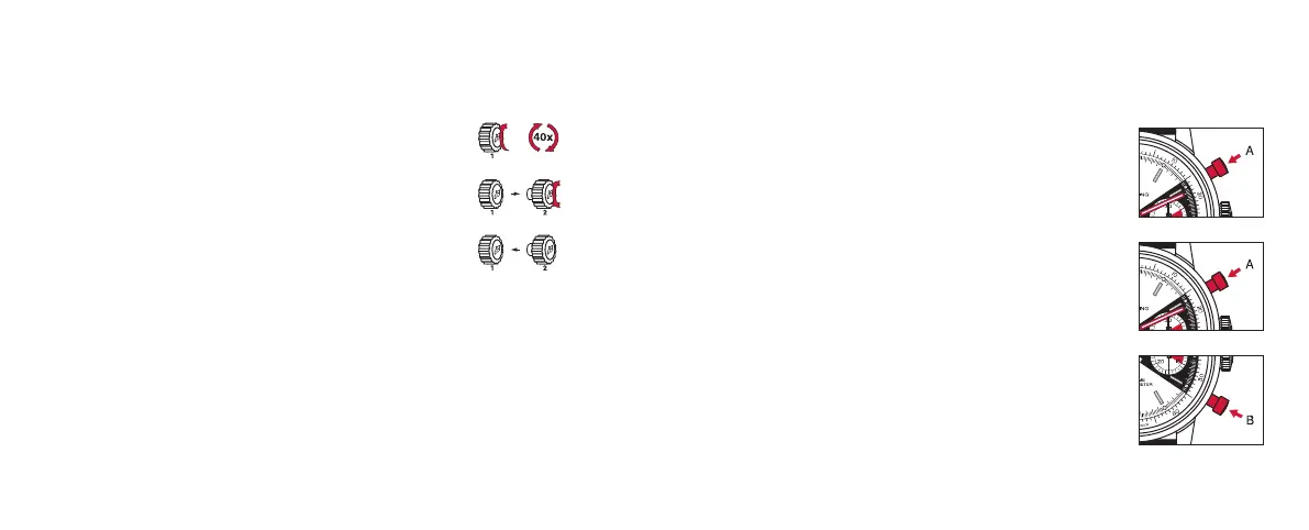 1. Premir o pistão A para acionar o cronógrafo. O ponteiro2 permite